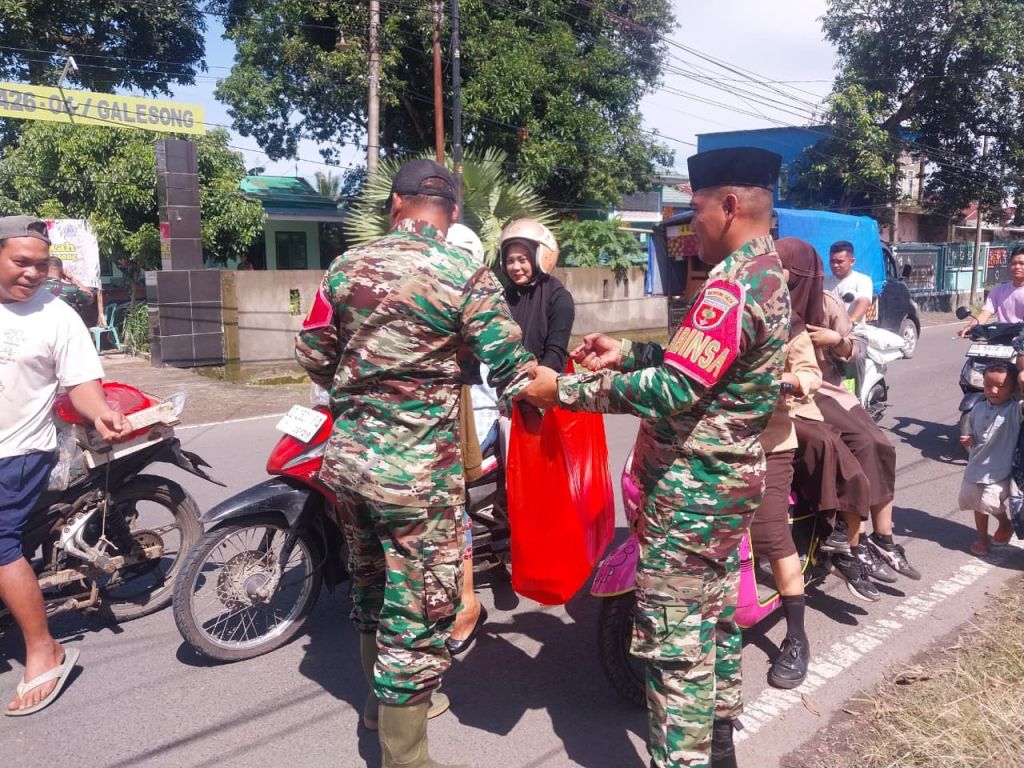 Takalar||Likeberitanews- – Koramil 1426-04/Galesong Kodim 1426/Takalar melaksanakan kegiatan Jum’at berkah dengan membagikan Snack atau kue kepada para pengguna jalan, dipimpin oleh Peltu Muh Nawar Bati Tuud Koramil 1426-04/Galesong di depan Kantor Koramil Desa Galesong Kota Kecamatan Galesong Kabupaten Takalar. Jum’at, 30/01/2026.