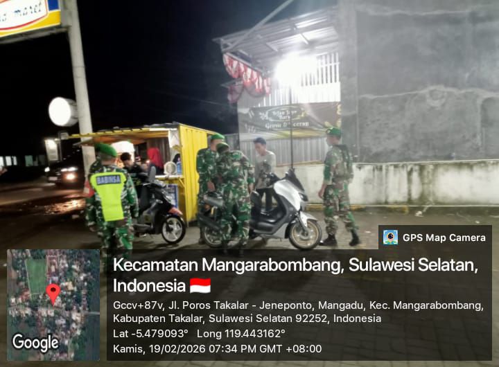 Takalar||Likeberitanews– Sebagai upaya menjaga stabilitas keamanan dan ketertiban masyarakat, Personel Koramil 1426-05/Marbo, Kodim 1426/Takalar melaksanakan patroli bersama Komponen Masyarakat Pendukung (Komduk) pada Kamis malam, 19 Februari 2026.