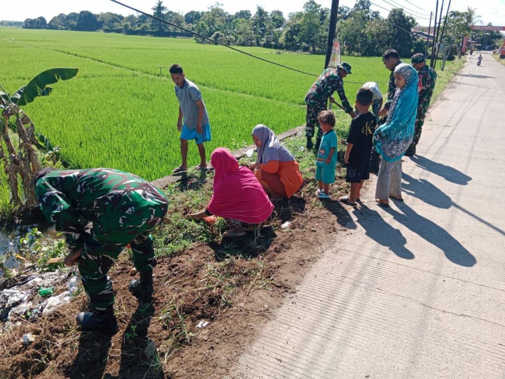 Kerja bakti dalam rangka memelihara kekompakan dan kemanunggalan TNI-Rakyat, begitu nampak terlihat dan benar-benar nyata dalam kegiatan di wilayah teritorial Koramil. Hal tersebut terbukti saat anggota Koramil dengan sepenuh hati membantu warga masyarakat melaksanakan kerja bakti membersihkan saluran air dan rumput liar di pinggir jalan.